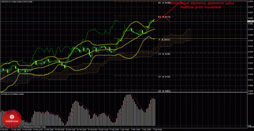 Анализируя курс иены на рынке Форекс 7 марта, видно, что цена продолжает отрабатывать новый сигнал на покупку и продолжает восходящее движение к первому уровню сопротивления. Текущий сигнал на покупку является подтвержденным и сильным, так как Чинкоу Спан закрепился выше графика цены, а цена располагается выше облака Ишимоку. Поэтому сейчас целью для восходящего движения является первый уровень сопротивления 95,09. В случае преодоления этого уровня восходящее движение сможет продолжиться с целью второй уровень сопротивления 96,61. Восходящее движение будет актуальным до тех пор, пока цена находится выше критической линии Киджун-сен (93,25), закрепление цены ниже этой линии поставит под сомнение дальнейшее восходящее движение, а «золотой крест» в свою очередь ослабится, в этом случае цена может начать нисходящее движение. Чинкоу Спан находится выше графика цены, что является подтверждением текущему сигналу на покупку и означает бычье настроение участников рынка по валютной паре доллар/иена. Боллинджер Бандс показывает восходящее движение, полосы расширяются и направлены вверх, поэтому сейчас рекомендуется рассматривать только торговлю на повышение. MACD направлен наверх, что говорит о текущем восходящем движении, поэтому лонги можно рассматривать до начала новой нисходящей коррекции, которое можно будет определить по развороту индикатора вниз. Отскок цены от уровня 95,09 также может спровоцировать нисходящее коррекционное движение.