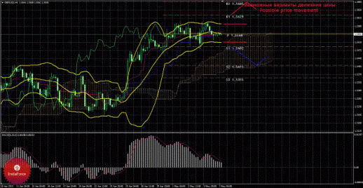 Валютный курс фунта 7 мая ушел в боковой канал, о чем свидетельствуют полосы Боллинджера, поэтому до завершения флэта входить в рынок не рекомендуется. Во время флэта Ишимоку формирует ложные сигналы, которые не отрабатываются должным образом или не отрабатываются вообще. Рассматривать возможности заходов в рынок можно будет после расширения полос Боллинджера в одну из сторон и формирования соответствующего сигнала от Ишимоку. Чинкоу Спан находится выше графика цены, что означает бычье настроение валютных трейдеров по этой валютной паре. Боллинджер Бандс показывает боковое движение, полосы не расширяются и направлены вбок, поэтому сейчас на рынке не актуальны любые позиции. MACD развернулся вниз, что свидетельствует о текущем нисходящем движении в рамках бокового канала. Цена в ближайшие дни может двигаться между полосами, отрабатывая поочердно каждую из них.