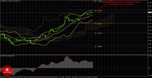 Валютный курс фунта 14 июня также продолжает восходящее движение, а MACD начал разряжаться, первый уровень сопротивления остается неотработанным. Текущий сигнал на покупку – подтвержденный и сильный, так как Чинкоу Спан закрепился выше графика цены, а цена располагается выше облака Ишимоку. На данный момент целью восходящего движения является первый уровень сопротивления 1,5762. В случае преодоления этого таргета, восходящее движение может продолжиться с целью второй уровень сопротивления 1,5967. Восходящее движение сохраняется до тех пор, пока цена находится выше Киджун-сен (1,5615), если цена закрепится ниже этой линии, то сигнал на покупку ослабится, а дальнейшее восходящее движение будет поставлено под вопрос, зато сможет начаться нисходящее движение с целью пивот уровень 1,5477. Чинкоу Спан находится выше графика цены, что является подтверждением текущему сигналу на покупку и означает бычье настроение валютных трейдеров по этой валютной паре. Боллинджер Бандс показывает продолжение восходящего движения, полосы вновь расширяются и направлены вверх, поэтому сейчас длинные позиции можно рассматривать. MACD направлен вниз, что свидетельствует о текущем коррекционном движении цены, однако, цена не понижается, поэтому делается вывод о том, что индикатор разряжается. Отскок цены от уровня 1,5762 может засвидетельствовать нисходящую коррекцию.