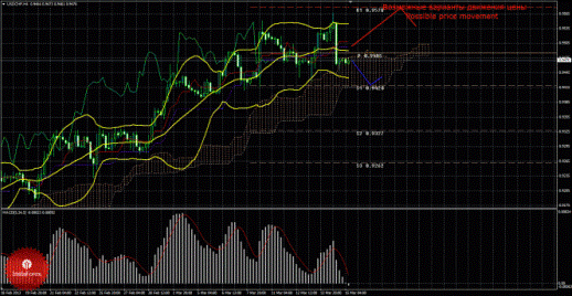 15 марта пара доллар/франк закрепилась ниже Киджун-сен и внутри облака Ишимоку, однако сигнал на покупку пока не отменился, но может это сделать в ближайшее время. Текущий сигнал на покупку – неподтвержденный и слабый, так как Чинкоу Спан закрепилась ниже графика цены, а цена располагается внутри облака Ишимоку. Поэтому сейчас целью для восходящего движения является первый уровень сопротивления 0,9578, но теперь только в случае закрепления цены выше Киджун-сен. При закреплении цены выше первой цели будет доступен новый таргет для восходящего движения – второй уровень сопротивления 0,9643. Восходящее движение сохраняется до тех пор, пока цена находится выше Киджун-сен (0,9500), сейчас цена закрепилась ниже этой линии, поэтому сигнал на покупку ослаблен, а нисходящее движение может продолжиться к нижней границе облака Ишимоку и первому уровню поддержки 0,9420. Чинкоу Спан находится ниже графика цены, что не является подтверждением текущему сигналу на покупку и означает медвежье настроение участников рынка по валютной паре доллар/франк. Боллинджер Бандс показывает возможное боковое движение, немного расширяются, но направлены уже больше вбок, чем вверх, поэтому есть опасность начала (продолжения) бокового движения. MACD направлен вниз, что сигнализирует о текущем нисходящем движении и не разрешает сейчас рассматривать лонги, которые сейчас не актуальны в любом случае. Если цена закрепится выше Киджун-сен, то валютная пара может попытаться вновь возобновить восходящее движение.
