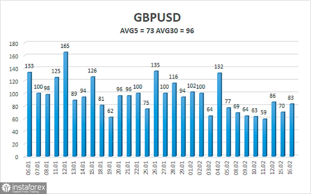 Мы напоминаем, что на 24-часовом таймфрейме котировки отскочили от линии Сенкоу Спан Б индикатора Ишимоку и уровня 50,0% по Фибоначчи. Таким образом, в долгосрочном плане мы выступаем за сохранение восходящей тенденции. Однако в краткосрочном плане нисходящая коррекция вполне возможна. И продолжаться она может как раз до того момента, когда Конгресс США одобрит все-таки новый пакет стимулов. Учитывая также тот факт, что на эту неделю запланировано крайне малое количество фундаментальных и макроэкономических событий, мы также не ожидаем сильных и трендовых движений. Более того, пара уже больше недели торгуется с явно пониженной волатильностью, которая не превышает 50 пунктов в день. 15 февраля, в понедельник, и вовсе был поставлен абсолютный антирекорд – 28 пунктов в день. Таким образом, трейдеры должны также понимать, что сейчас не самое благоприятное время для активной торговли. Торговать можно, так как движения спокойные, но прибыль может быть невысокой, так как сами движения чрезвычайно слабые.