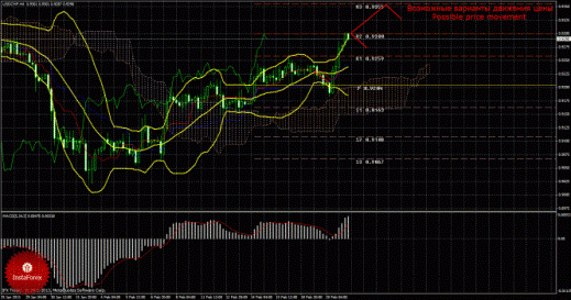 21 февраля пара доллар/франк, так же как и евро, не смогла даже отработать верхнюю границу облака Ишимоку, закрепилась выше Киджун-сен и сформировала новый «золотой крест». Текущий сигнал на покупку – подтвержденный и сильный, так как Чинкоу Спан закрепился выше графика цены, а цена располагается выше облака Ишимоку. Поэтому сейчас целью для восходящего движения является второй уровень сопротивления 0,9300, который уже отработан, но не преодолен. В случае закрепления цены выше первой цели будет доступен новый таргет для восходящего движения – третий уровень сопротивления 0,9355. Восходящее движение сохраняется до тех пор, пока цена находится выше Киджун-сен (0,9240), если цена закрепится ниже этой критической линии, то нисходящее движение сможет продолжиться к облаку Ишимоку и его нижней границе. Чинкоу Спан находится выше графика цены, что является подтверждением текущему сигналу на покупку и означает бычье настроение участников рынка по валютной паре доллар/франк. Боллинджер Бандс показывает продолжение восходящего движения, полосы расширяются и направлены вверх, поэтому восходящее движение может продолжиться, а актуальными остаются длинные позиции. MACD направлен вверх, что сигнализирует о восходящем движении и позволяет рассматривать лонги до начала коррекционного движения, о котором просигнализирует MACD, развернувшись вниз. Отскок цены от уровня 0,9300 может спровоцировать начало нисходящей коррекции.