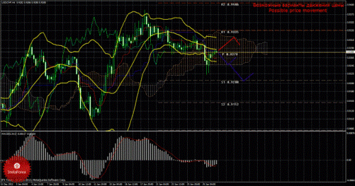 28 января пара доллар/франк продолжает отрабатывать сигнал на продажу, при этом цена зашла в облако Ишимоку, не смогла выйти через его нижнюю границу и начала корректироваться. Текущий сигнал на продажу – подтвержденный и слабый, так как Чинкоу Спан закрепился ниже графика цены, а цена располагается внутри облака Ишимоку. Поэтому сейчас целью для нисходящего движения является нижняя граница облака Ишимоку. В случае закрепления цены ниже облака Ишимоку будет доступен новый таргет для нисходящего движения – первый уровень поддержки 0,9208. Нисходящее движение сохраняется до тех пор, пока цена находится ниже Киджун-сен (0,9285), в случае закрепления цены выше этой линии сигнал на продажу станет ослабленным и поставится на грань отмены и сможет возобновиться восходящее движение к первому уровню сопротивления 0,9335. Чинкоу Спан находится ниже графика цены, что является подтверждением текущему сигналу на продажу и означает медвежье настроение участников рынка по валютной паре доллар/франк. Боллинджер Бандс показывает продолжение слабого нисходящего движения, полосы сужаются и направлены вниз, поэтому актуальными сейчас являются короткие позиции, но «мертвый крест» остается слабым. MACD на данный момент повышается, что сигнализирует о восходящем направлении движения, однако, открывать коротие позиции сейчас в любом случае преждевременно. Отскок от Сенкоу Спан Б спровоцировал восходящую коррекцию, которая может перерасти и в полноценное восходящее движение.