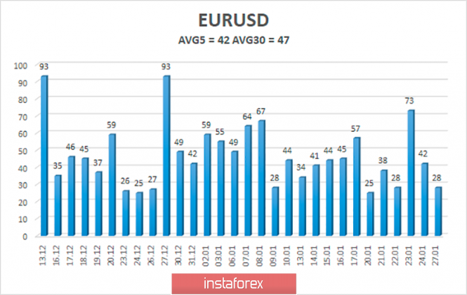 Обзор пары EUR/USD. 28 января. Джо Байден считает Трампа худшим президентом, чтобы противостоять «коронавирусу».