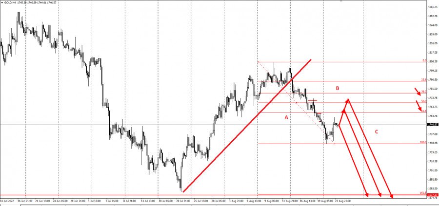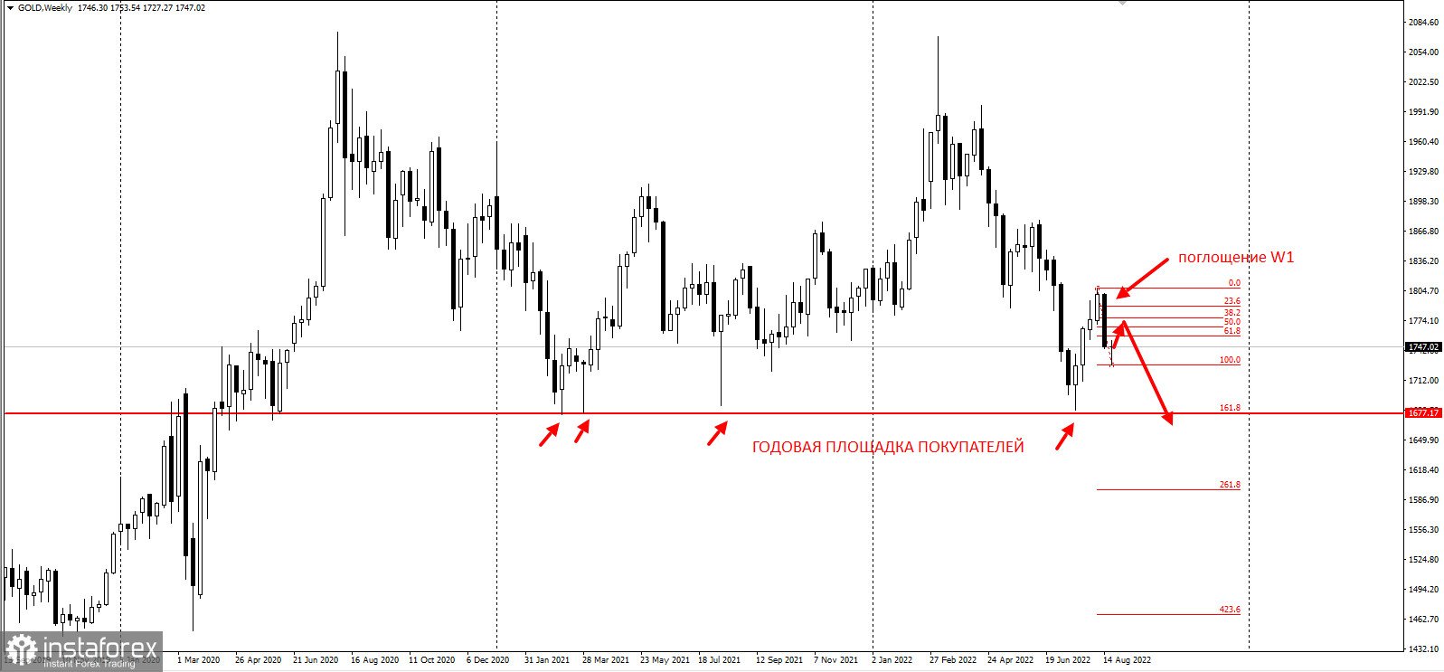 Поглощение на W1 представляет собой ровное понижение на Н4. Предлагаю рассмотреть шортовый сценарий по следующей схеме: