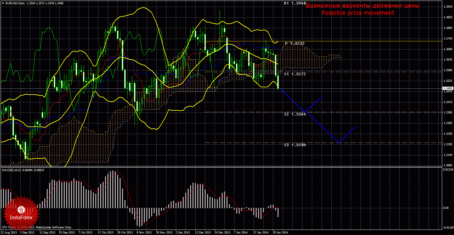 По валютной паре EUR/USD продолжается нисходящее движение. Первой целью для торговли на понижение выступает 1,3364. Если произойдет закрепление ниже этого таргета, то ордера на продажу можно будет рассматривать с целью 1,3204. Уровень защитного ордера рекомендуется выставлять выше 1,3685 и в случае понижения Киджун-сен переносить вниз и уровень стопа. При прохождении ценой 100-150 пунктов в нужную сторону, стоп лосс рекомендуется переносить в область безубытка. Закрывать вручную короткие позиции можно будет в случае разворота индикатора MACD наверх или при отскоке цены от уровня 1,3364. Ордера тейк-профит при торговле на понижение можно выставлять немного выше целевых уровней – 1,3380 и 1,3225.
