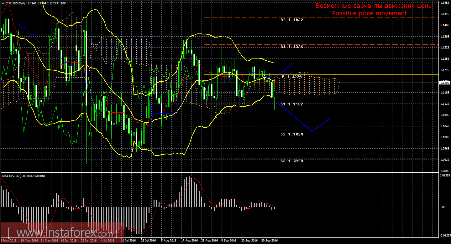 Евро на дневном таймфрейме отработал первый таргет и не сумел его преодолеть, поэтому началось коррекционное движение. Текущий сигнал на продажу не подтвержденный - Чинкоу Спан закрепился выше графика цены и слабый, так как цена располагается внутри облака Ишимоку. Первой актуальной целью для нисходящего движения сейчас является первый уровень поддержки 1,1132, но открывать шорты можно будет не ранее закрепления цены ниже облака. Если этот таргет будет преодолен, то новой целью будет второй уровень поддержки 1,1024. Нисходящее движение будет актуальным до тех пор, пока цена находится выше линии Киджун-сен (1,1215), если цена закрепится выше критической линии, то дальнейшее нисходящее движение будет отменено, а движение вверх сможет попытаться продолжиться с целью первый уровень сопротивления 1,1336, сигнал на продажу – будет поставлен на грань отмены. Цена располагается между линий Тенкан-сен и Киджун-сен, что свидетельствует о текущем коррекционном уклоне движения. Тенкан-сен направлен вниз, что говорит нам о нисходящем движении в краткосрочном плане. Киджун-сен также направлен вниз, что свидетельствует о сохранении нисходящего движения и в среднесрочной перспективе. Чинкоу Спан находится выше графика цены, что не является подтверждением текущему сигналу на продажу и означает бычье настроение трейдеров. Облако Ишимоку свидетельствует о восходящем движении, оно направлено вверх и сужается, что свидетельствует об ослаблении восходящего импульса.