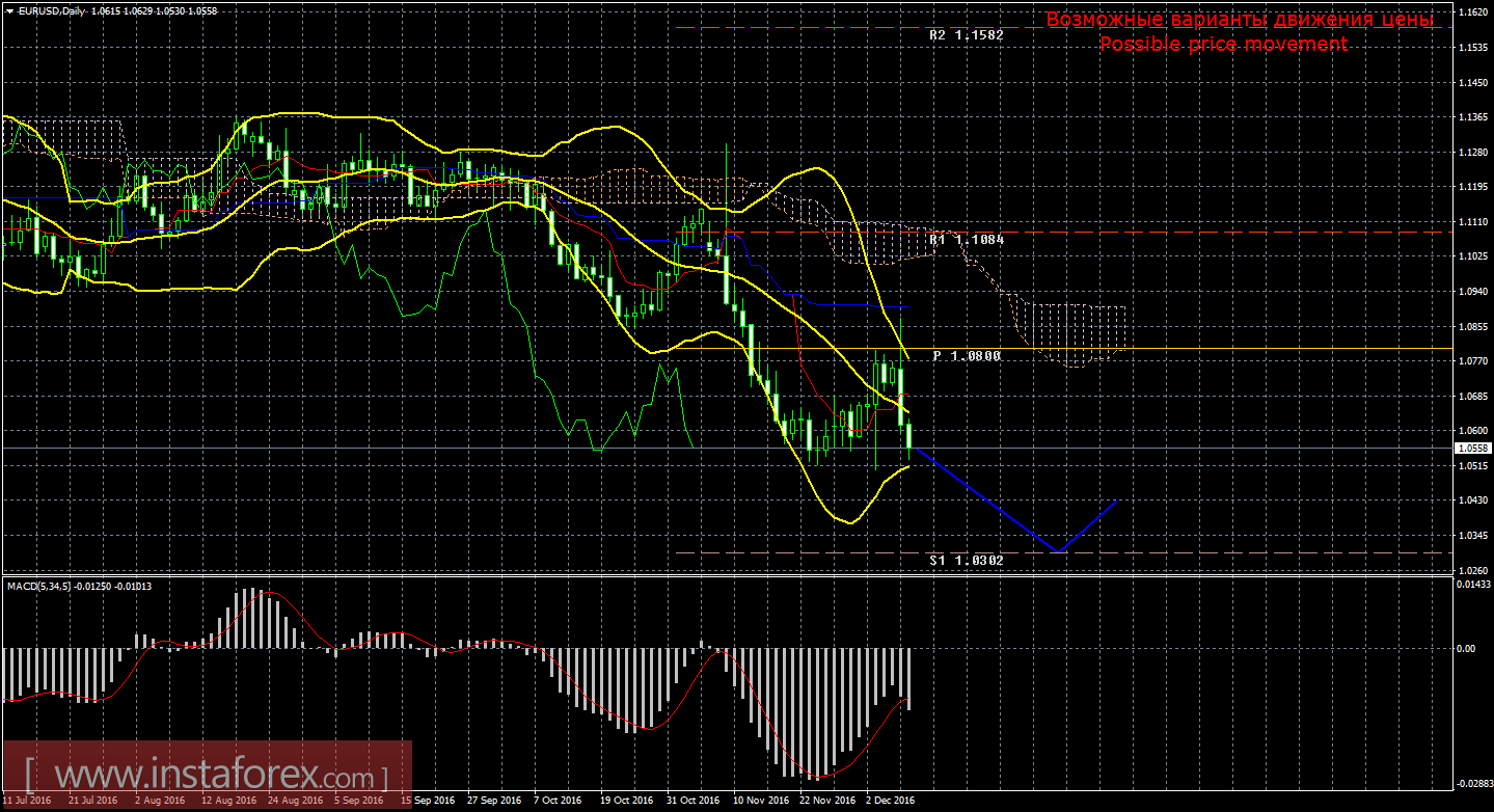 По валютной паре EUR/USD завершилась коррекция. Первым целевым уровнем для коротких позиций выступает 1,0302. Вторым таргетом является 1,0018. Уровень защитного ордера рекомендуется выставлять выше 1,0900 и в случае понижения линии Киджун-сен переносить вниз и уровень стопа. При прохождении ценой 100-150 пунктов в нужную сторону, стоп лосс рекомендуется переносить в область безубытка. Сокращать вручную ордера на продажу рекомендуется при отскоке цены от 1,0302 или в случае разворота MACD наверх. Уровни Тейк-профиты можно размещать немного выше целей – 1,0320 и 1,0035. Ордера на покупку сейчас не актуальны.