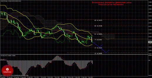 По валютной паре USD/CHF возобновилось нисходящее движение. Целью для возможного нисходящего движения выступает первый уровень поддержки 0,9025. При закреплении ниже этого уровня короткие позиции станут актуальны с целью 0,8905. Сокращать ордера на продажу можно будет в случае разворота индикатора MACD наверх или отскока цены от уровня 0,9025. Стоп-лосс при торговле на понижение рекомендуется размещать выше Киджун-сен – 0,9230. При текущей прибыли короткой позиции в 100-120 пунктов, рекомендуется переносить S/L в безубыток. T/P для ордеров на продажу можно выставлять чуть выше целевых уровней – 0,9040 и 0,8920.