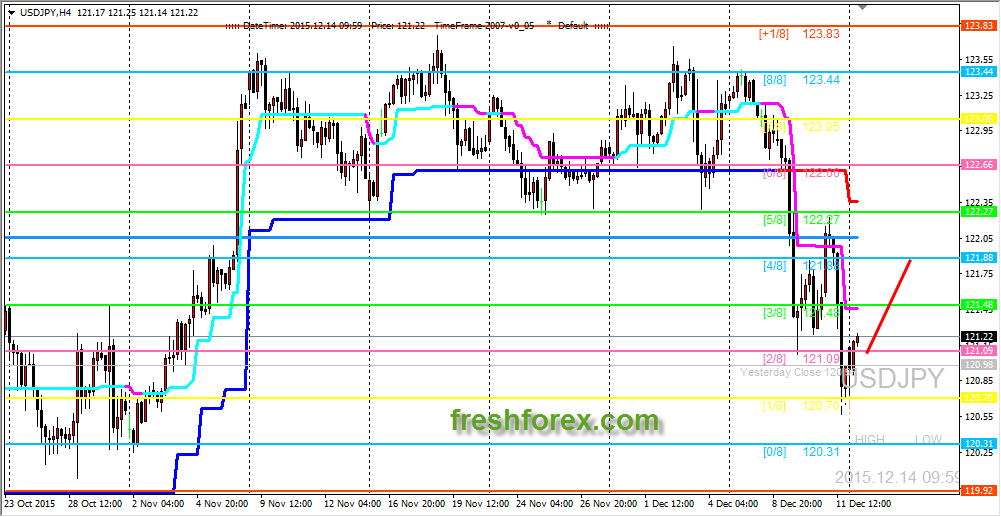 14 декабря 2015, USD/JPY. Цена развернулась на уровне (1/8).