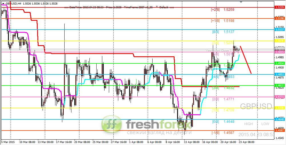 23 апреля 2015, GBP/USD. Ждем цену на уровне (4/8).