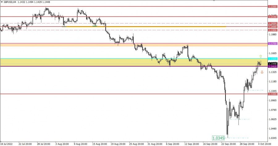 Валютная пара GBPUSD в ходе стремительного коррекционного движения от локального минимума нисходящего тренда преодолела уровень сопротивления 1.1410. Этот шаг указывает на высокое стремление спекулянтов продолжить рост, несмотря на тот факт, что фунт стерлингов уже укрепился более чем на 1 100 пунктов в период 7 торговых дней.