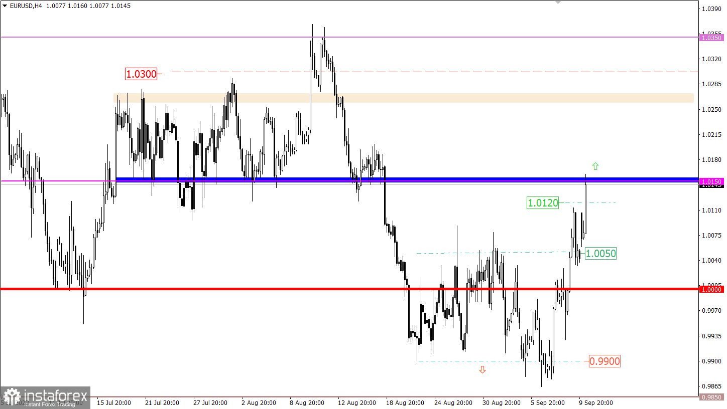 12 сентября С открытия новой торговой недели возник восходящий ГЭП примерно на 60 пунктов. Этот ценовый разрыв вернул котировку к максимумам минувшей недели. С открытием европейской сессии восходящий цикл ускорился, что привело к движению выше уровня 1.0150. В данной ситуации ценовой импульс более чем в 100 пунктов за короткий промежуток времени может привести к перегреву длинных позиций в краткосрочных временных периодах. Это может привести к техническому откату. В то же время стабильное удержание цены выше отметки 1.0150 допускает последующее формирование коррекции по долларовым позициям.