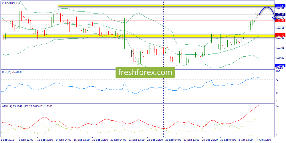 05 октября 2016, USD/JPY. Йена. Ищем входы вниз в зонах 103.06 и 103.33.