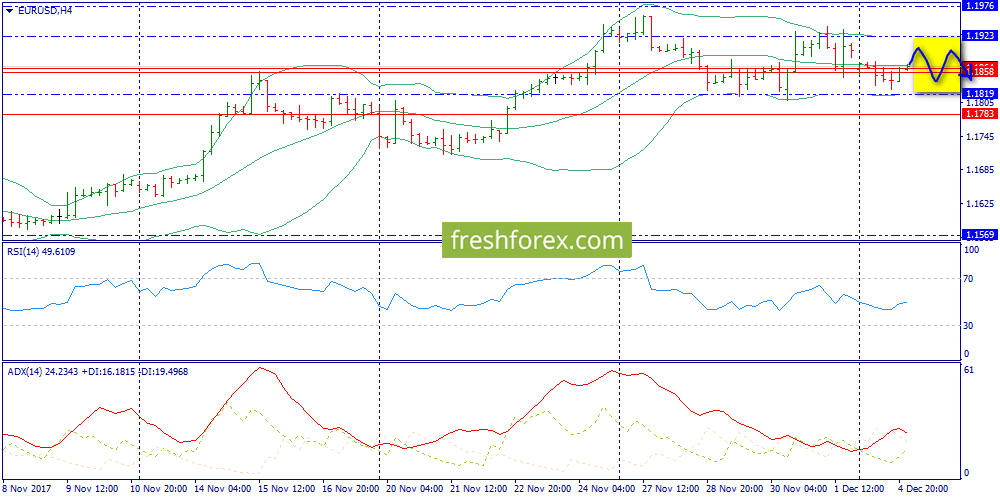 Н1: присутствует более локализованный диапазон 1.1838-1.1877 (конверты Боллинджера). Но он может быть нарушен, т.к. локальный ADX набрал трендовые кондиции, что может "выбросить" цену вверх, в зону 1.1923.