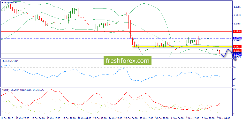 Н4: здесь отмечаем более существенный рост ADX, поэтому возможен прорыв нижнего конверта Боллинджера (1.1579), после чего можно будет ожидать откат в зону средней линии (1.1627) и продавать к 1.1546.