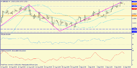 Н4: средняя Боллинджера находится на 1.5670 и мы видим, что в случае касания сформируется локальный разворотный Over&Under, с точкой входа 1.5730 и целью 1.56.