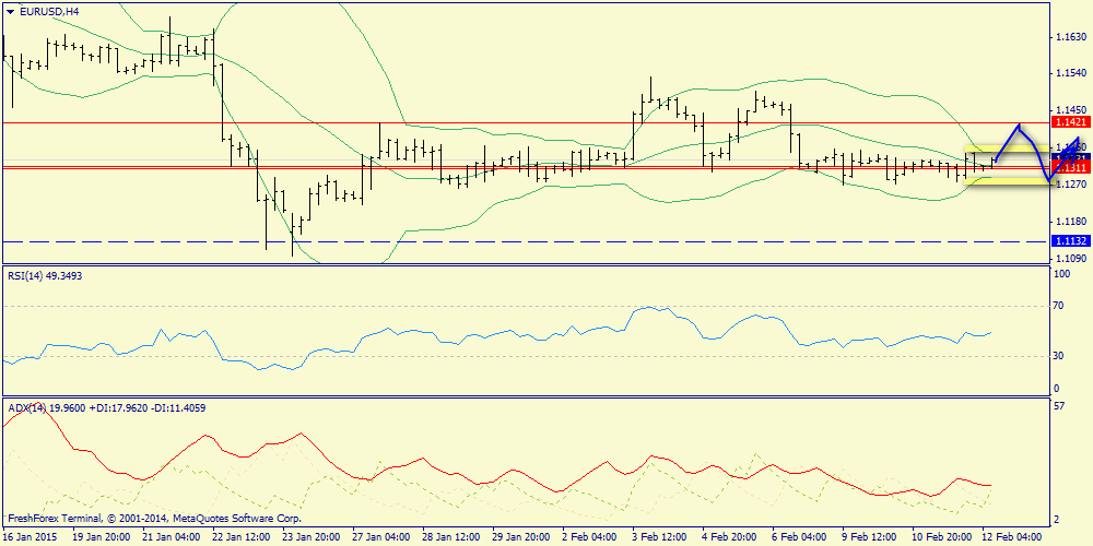 12 февраля 2015, EUR/USD. Вероятно продолжение нервного флэта.
