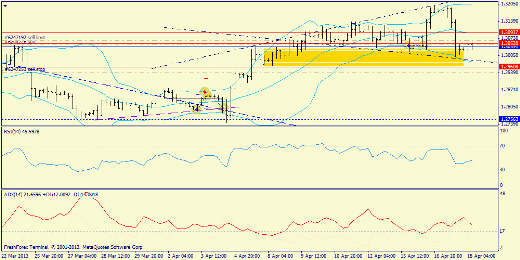 Дневной график: видим размашистый "рупор", выход из которого может быть равновероятно в обе стороны. У медведей, в отличии от соперников, есть конкретная зона, пробой которой будет означать срыв рынка в пике - это средняя Боллинджера (1.2960). Под этой отметкой 200-пунтковая пропасть. Перспектива увидеть 1.33 так же сохранена. Отправимся на младшие графики, чтобы посмотреть - обозы с какими боеприпасами идут на фронт.