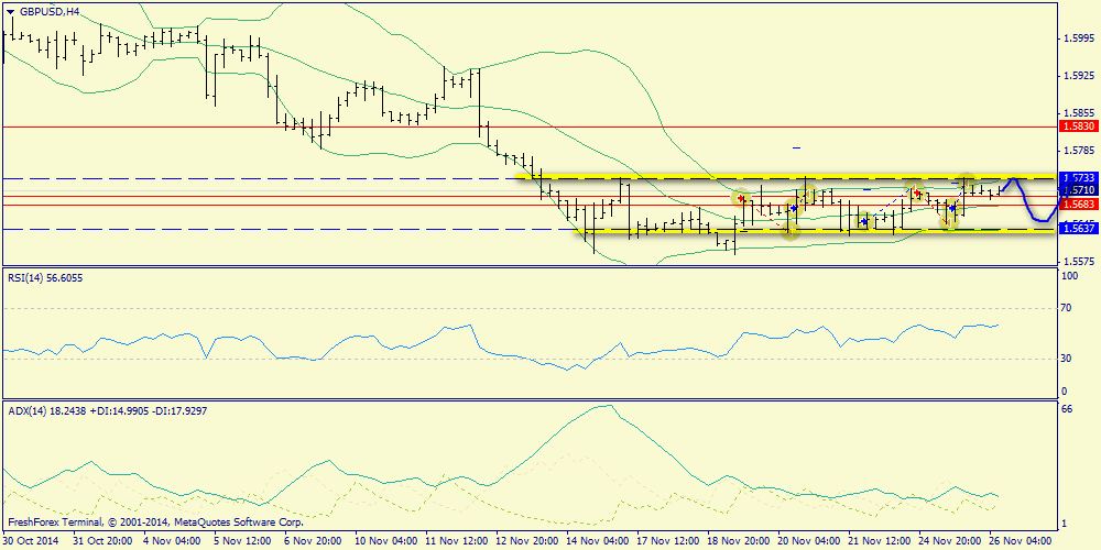 26 ноября 2014, GBP/USD. Коридор 1.5672-1.5733.