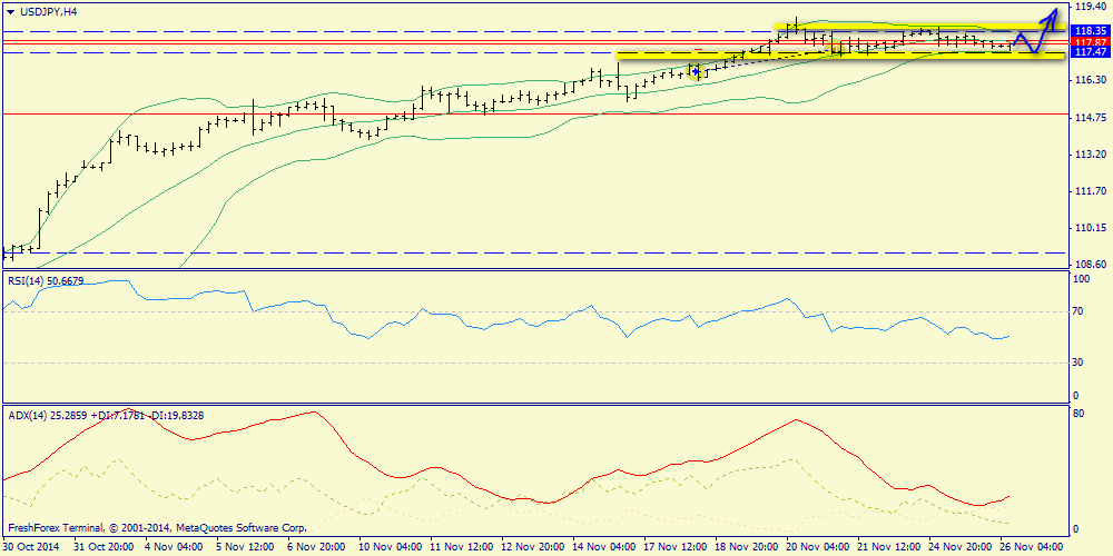 26 ноября 2014, USD/JPY. Сохранен северный потенциал.