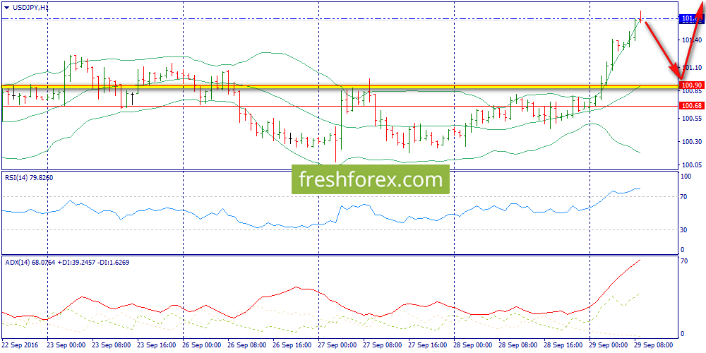 29 сентября 2016, USD/JPY. Йена. Ждем рост к 102.00 и затем откат вниз.