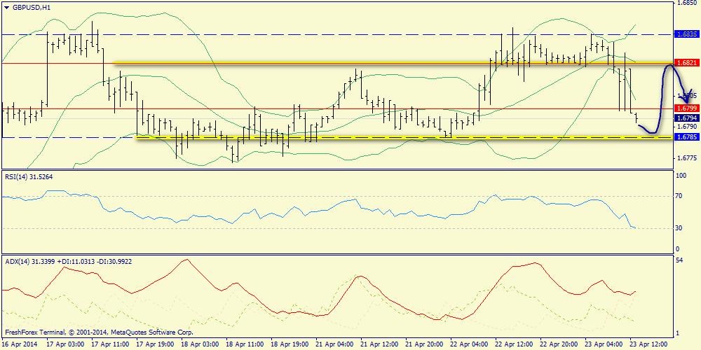 23 апреля 2014, GBP/USD. Зона поддержки 1.6765-1.6785.
