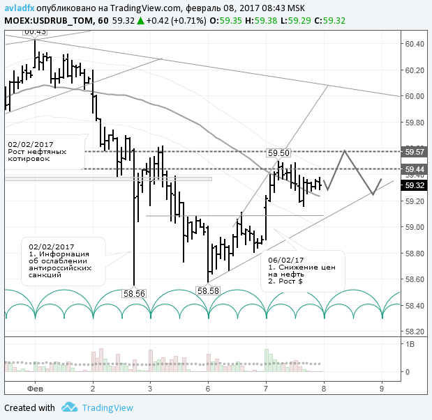 Во вторник, 6 февраля, по итогам торговой сессии на Московской бирже курс американского доллара расчётами «завтра» вырос на 41,75 коп. (+0,71%), до 59,32 руб., курс евро – на 8,00 коп. (+0,13%), до 63,43 руб. Торговый объём в паре доллар/рубль составил $3,1 млрд (+22,58%), евро/рубль – 211,1 млн евро (+22,35%). Центральный банк России с 8 февраля повысил официальный курс доллара США к рублю на 48,12 коп., до 59,1933 руб. Официальный курс евро к рублю был установлен на отметке 63,2362 руб., что выше предыдущего дня на 7,96 коп.