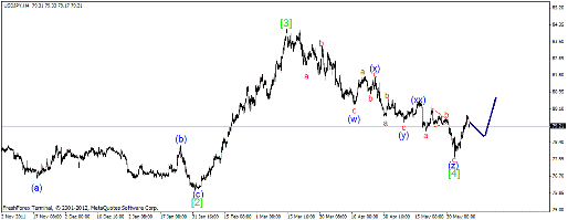 По данной паре также, произошли значительные изменения. Очевидно завершился нисходящий импульс и в данный момент наблюдается развитие восходящего клина. Если это так, то в ближайшее время нас ожидает коррекционное снижение, после чего рост возобновится.
