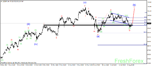 Таким образом, в данный момент предположительно идет формирование коррекционной волны 4 нисходящего импульса и по ее завершению нас ожидает еще одна волна вниз.