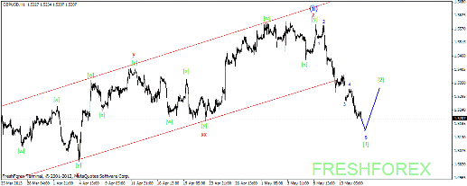 15 мая 2013, GBP/USD. Ожидается продолжение нисходящего движения.