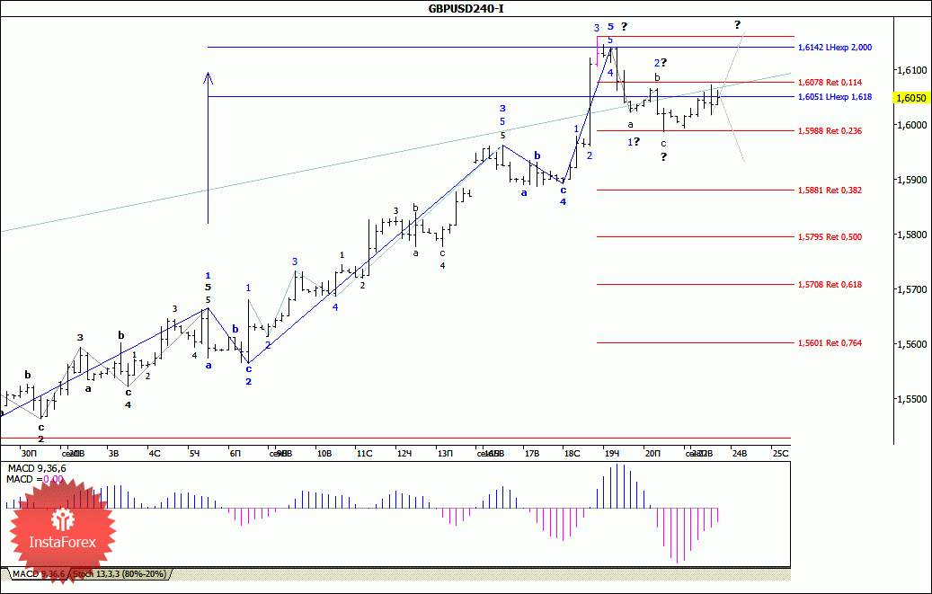 Несмотря на то что 5-я волна в целом выглядит завершенной, вчерашним ростом к отметке 1.6070 пара GBP/USD предприняла попытку усложнения внутренней волновой структуры этой 5-й волны. При этом если такая попытка увенчается успехом, то валютная пара возобновит восходящее движение по достаточно сложной траектории в направлении уровня 62-й или даже 63-й фигуры. В то же время вероятность дальнейшего развития нисходящей коррекции к расчетным коррекционным уровням 38.2% - 50.0% еще не утратила своей актуальности.