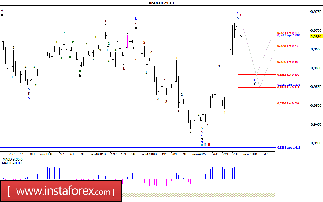 Волновой анализ валютной пары USD/CHF за 31 июля 2017 года