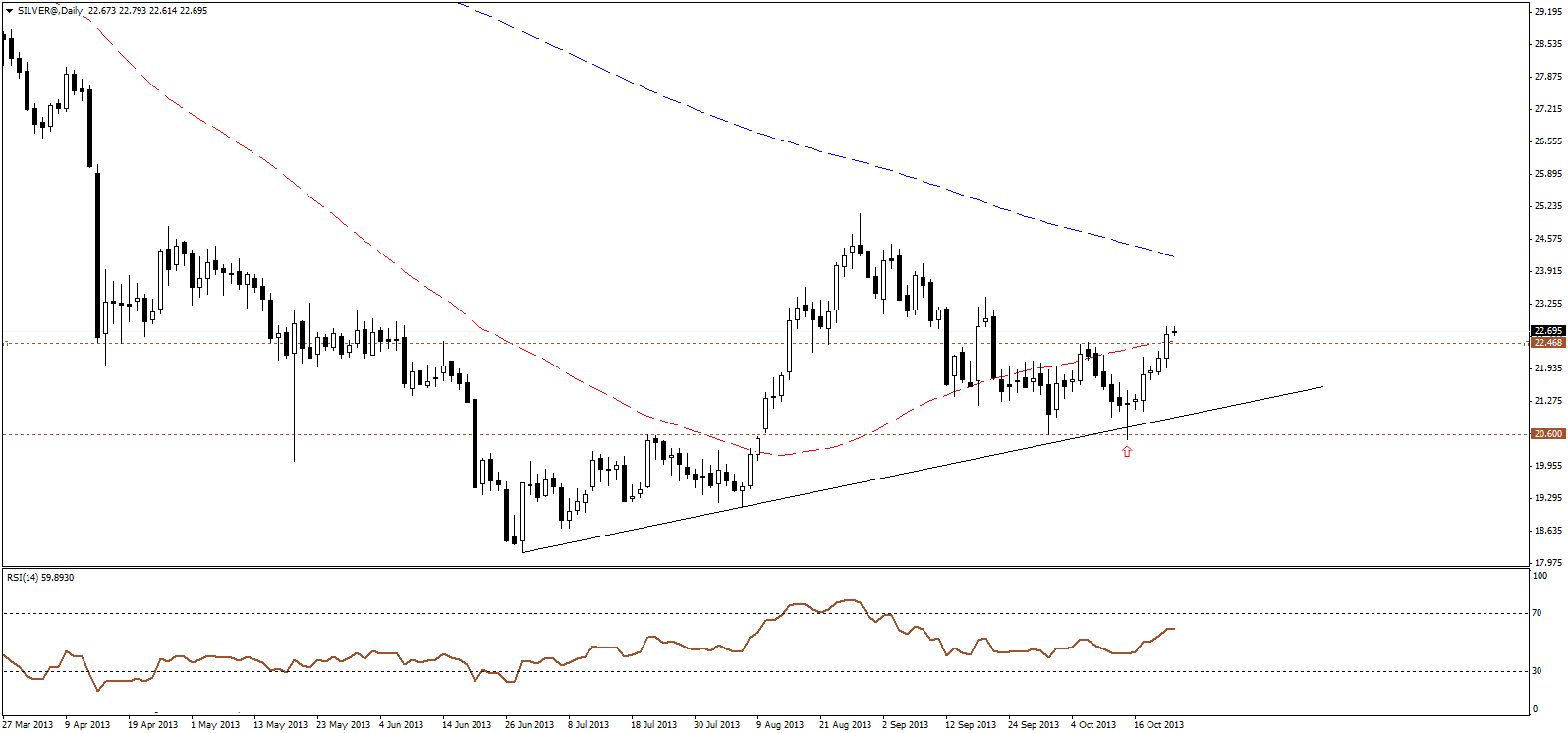 Серебро пробило SMA50 и область горизонтального сопротивления 22,45/50, что увеличивает шансы на дальнейший рост металла.
