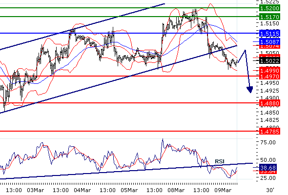 Наше мнение: ПРОДАВАТЬ ниже 1.5115 с целевыми точками 1.497 и 1.488.