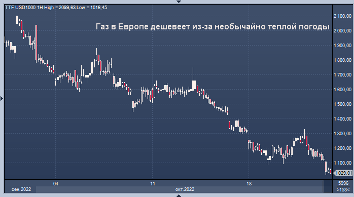 Европейский газ упал до 100 евро из-за мягкой погоды и достаточных запасов. Природный газ в Европе упал до 100 евро за мегаватт-час впервые с июня, поскольку теплая погода, достаточные запасы и меры ЕС по сдерживанию кризиса ослабили опасения по поводу зимнего дефицита.