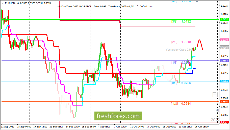 26 октября 2022, EUR/USD. EUR/USD: валютная пара тестирует промежуточный уровень сопротивления (2/8).